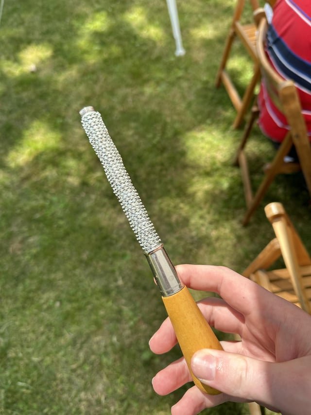 House was built in 1858, we thought it may have had some sort of purpose for lobstering or leather-working but we can’t figure it out. The small rows of metal spines rotate independently of each other, so the tool rolls across the surface you roll it on.
